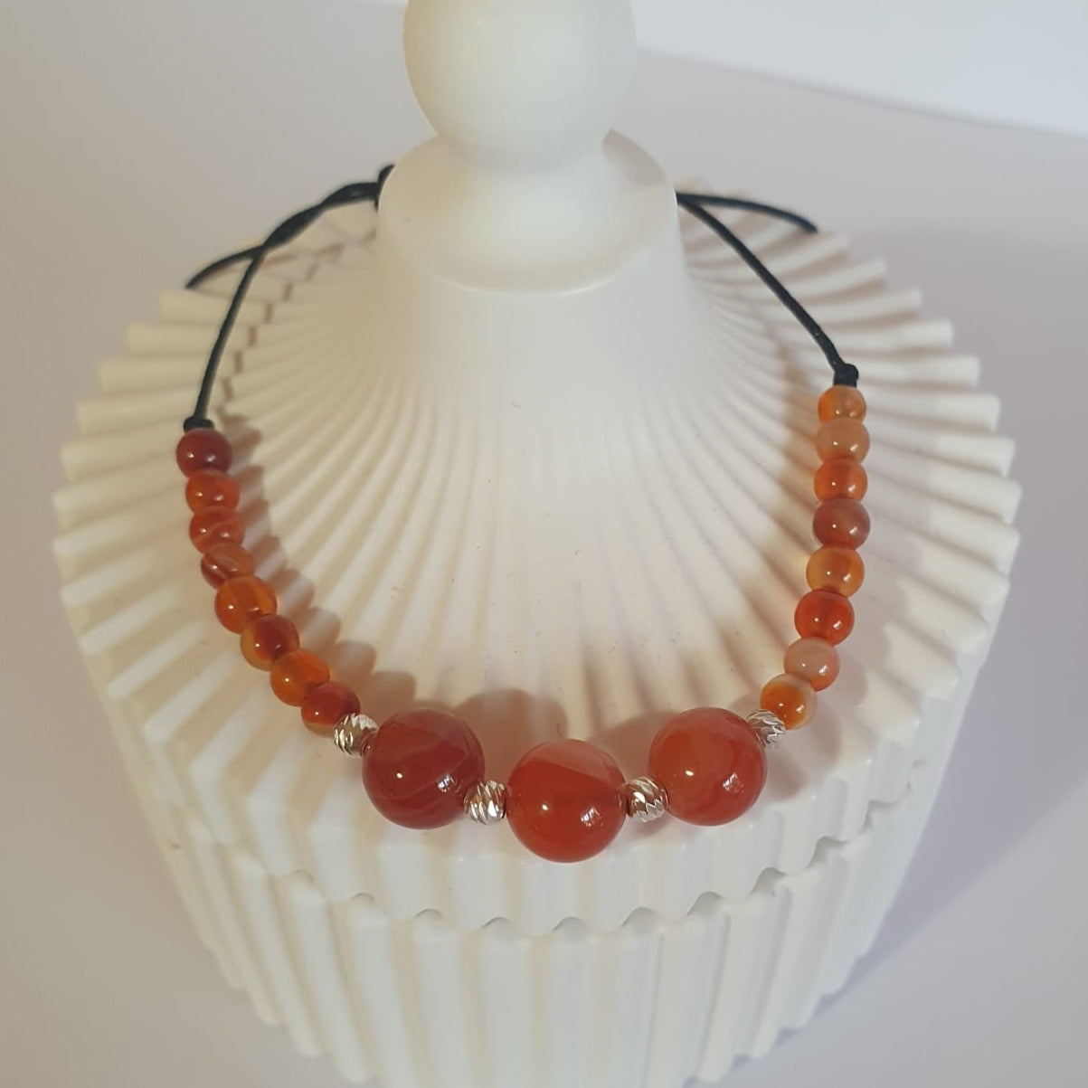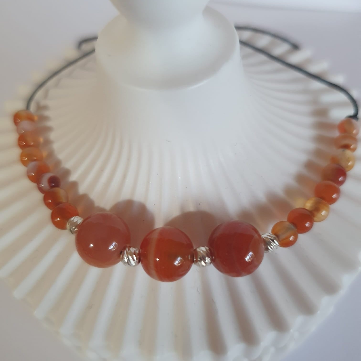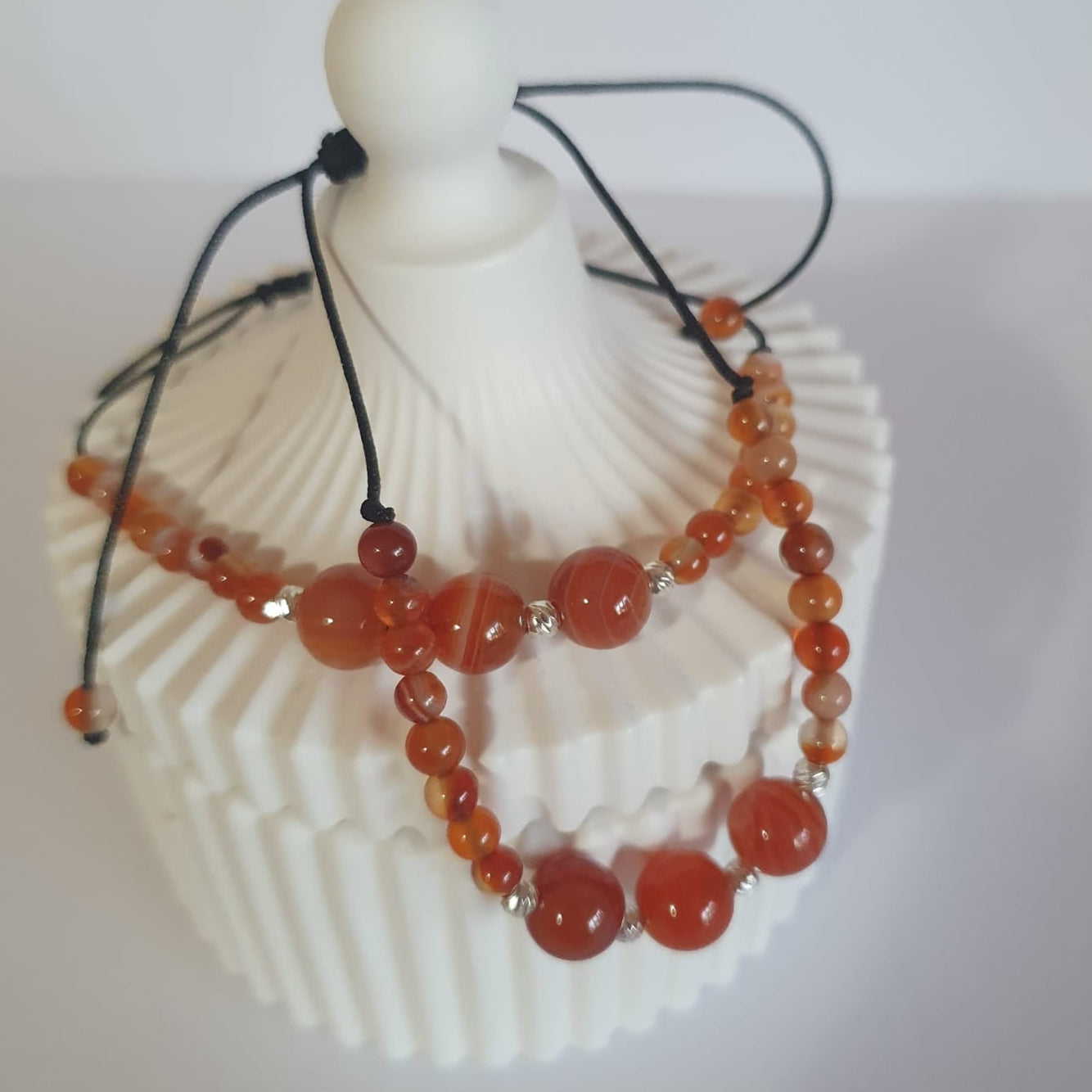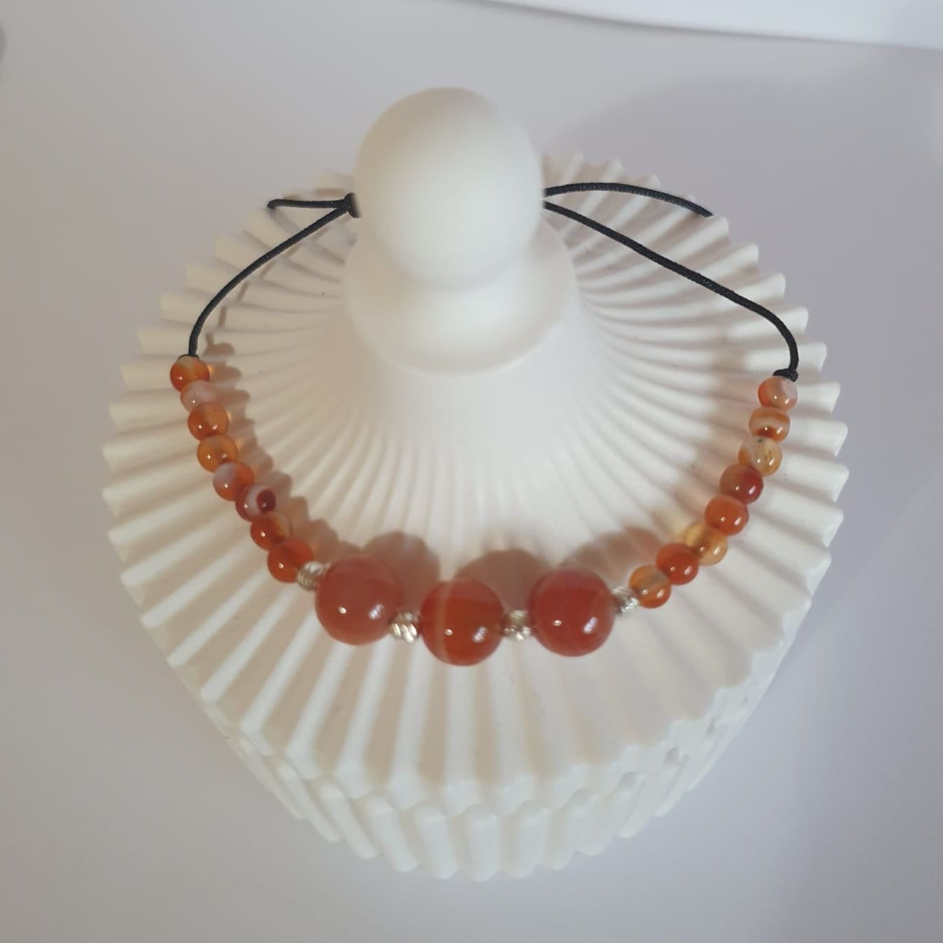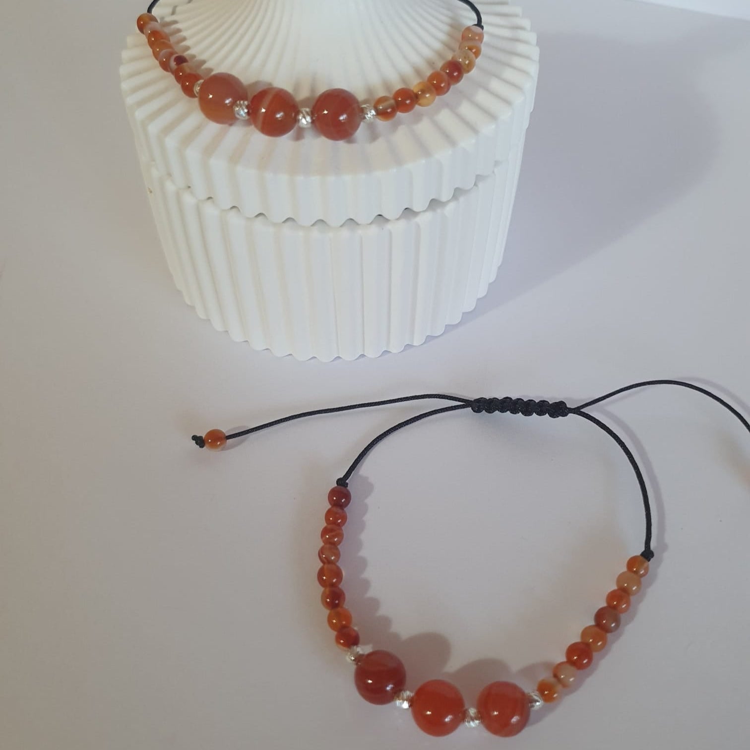 Această elegantă brățară din agat prezintă o combinație delicată de mărgele de agat de 4 mm, completate de trei mărgele impresionante de 8 mm, creând un accesoriu echilibrat și elegant. Designul său rafinat o face o piesă versatilă care completează orice ținută, perfectă pentru a adăuga o notă subtilă de sofisticare ținutei tale de zi cu zi.