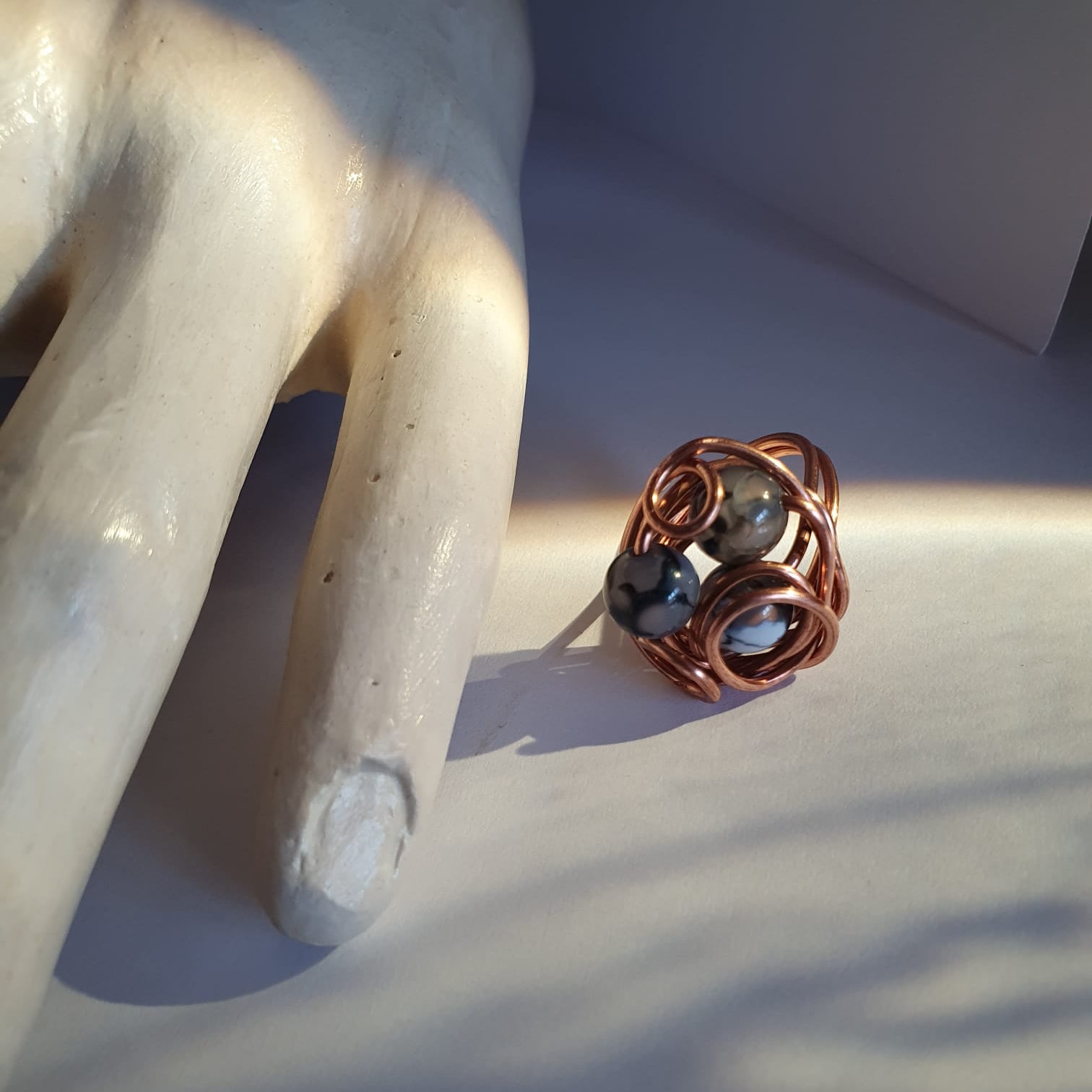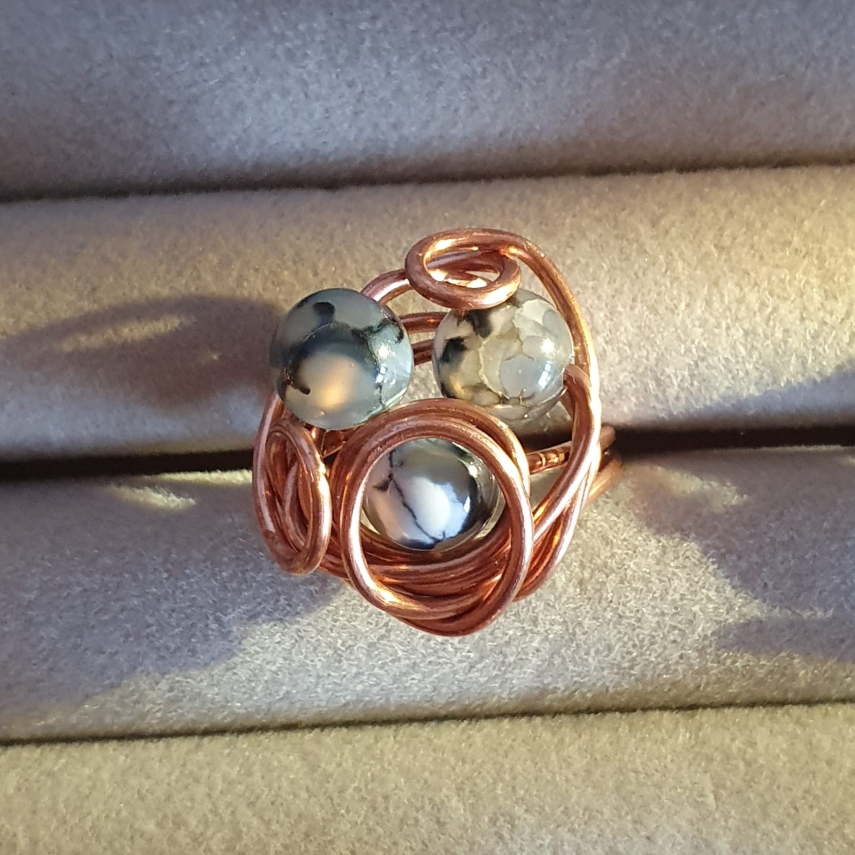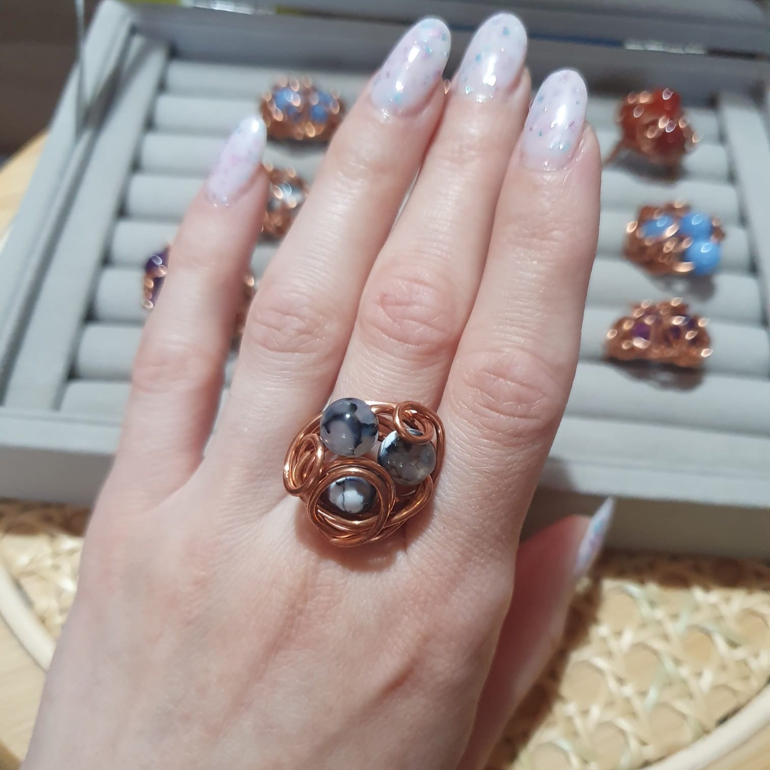 Împodobește-ți ținuta cu uimitorul nostru inel cu agat. Acest inel unic prezintă trei pietre de agat, cunoscute pentru proprietățile lor calmante și echilibrante. Îmbogățește-ți colecția cu această piesă atrăgătoare!