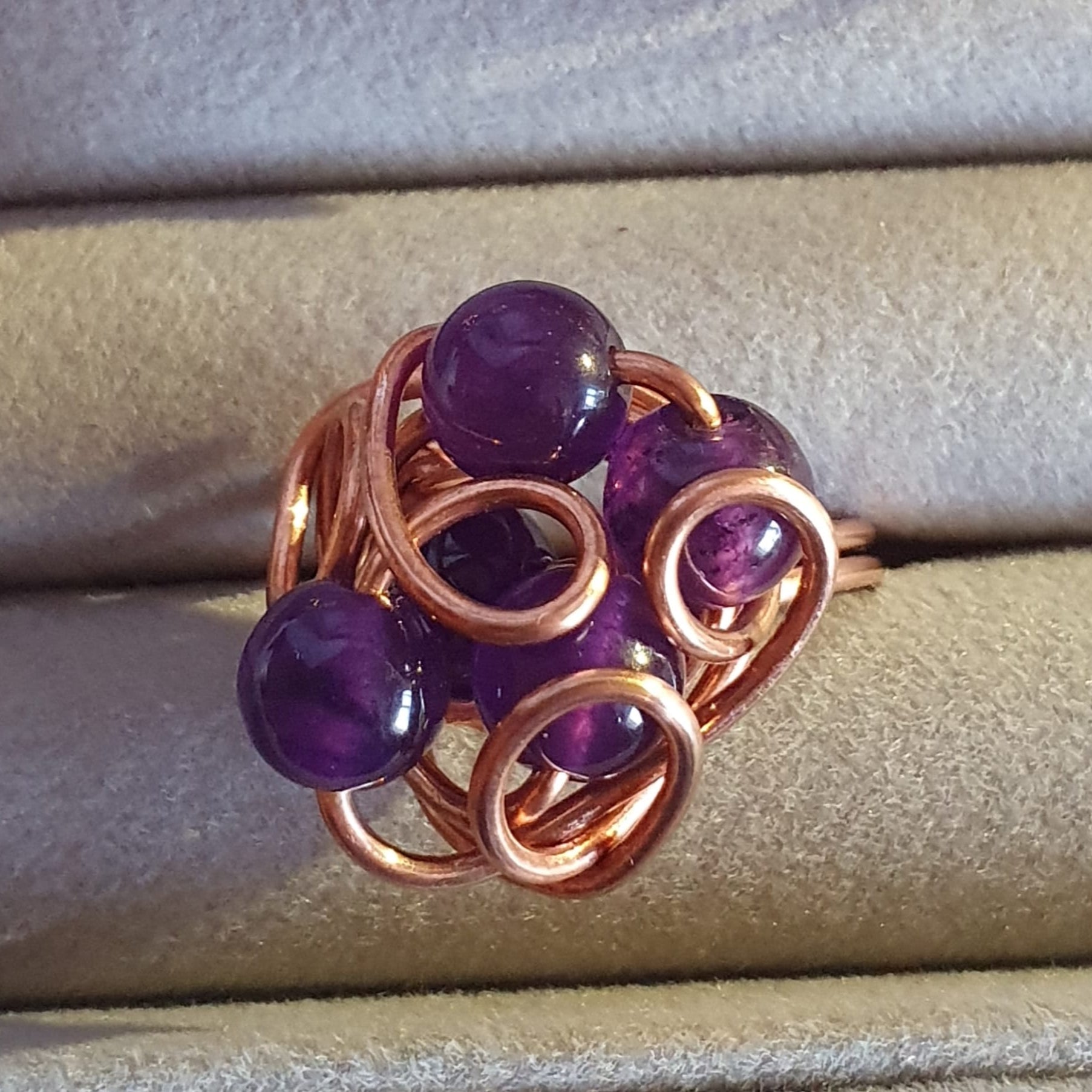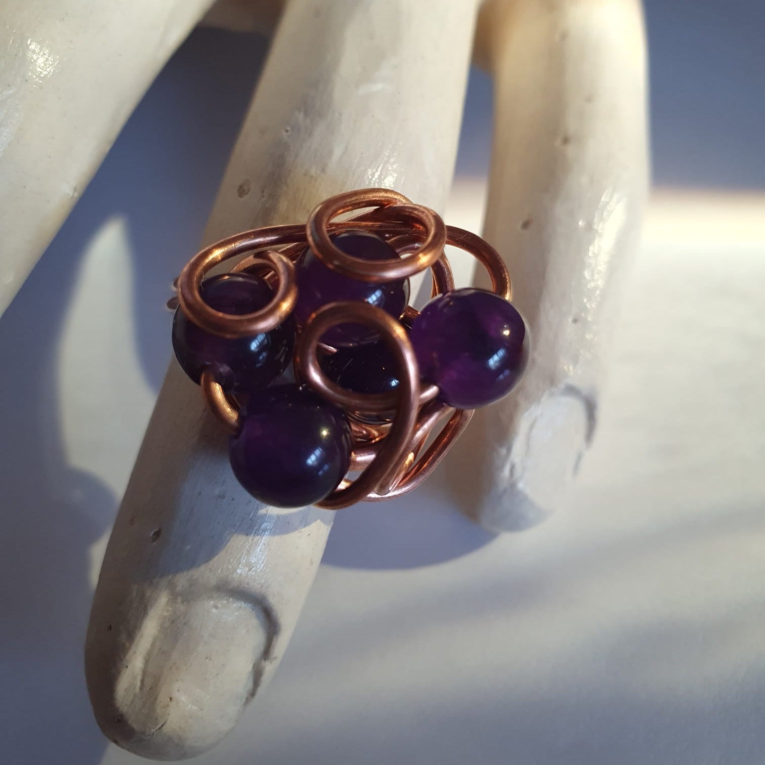 Experimentează energia puternică și încântătoare a inelului nostru cu ametist. Acest inel uimitor prezintă cinci pietre strălucitoare de ametist, cunoscute pentru capacitatea lor de a promova echilibrul, creativitatea și calmul. Împodobește-ți tinuta cu această bijuterie magnifică.