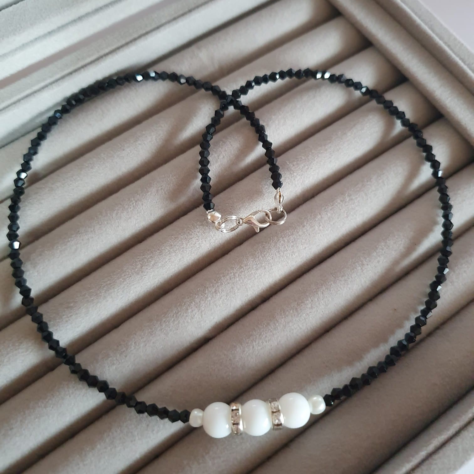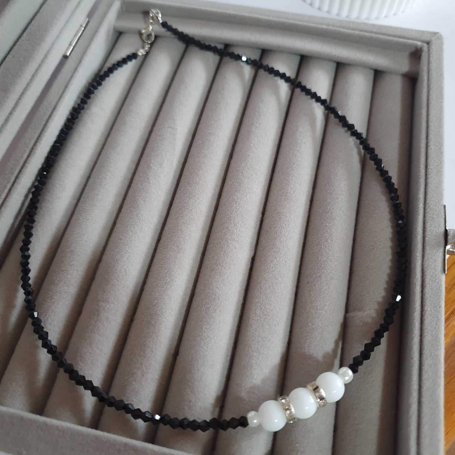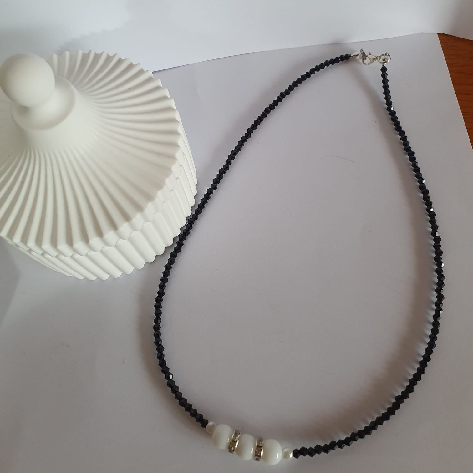 Strălucește cu colierul nostru din calcedonie, împodobit cu cristale de sticlă fascinante. Acest colier uimitor îți îmbunătățește aspectul de zi cu zi cu designul său unic și detaliile strălucitoare. Perfect pentru orice ocazie, cu siguranță va atrage atenția.