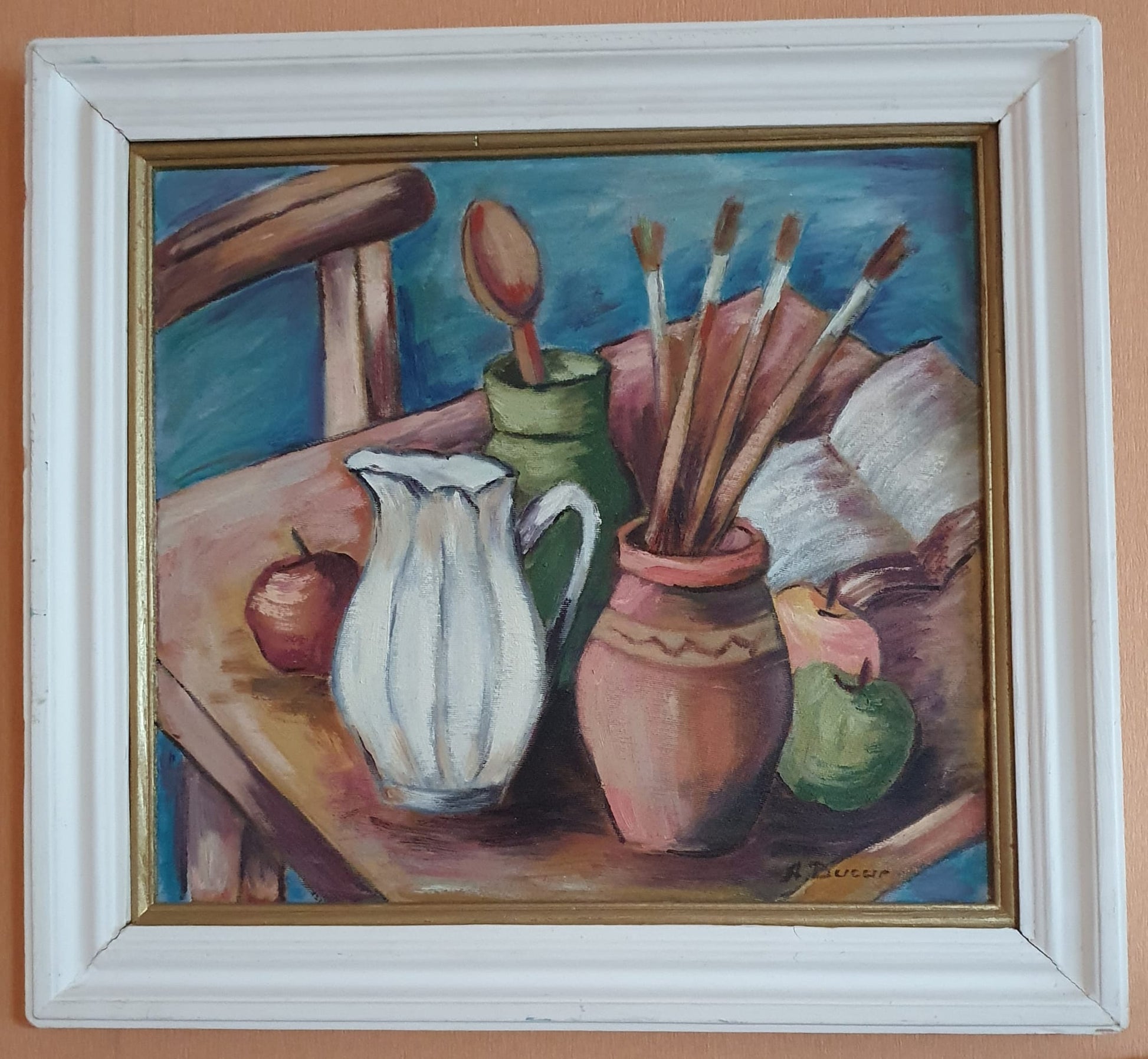 Descoperă farmecul atemporal al acestui tablou în ulei pe pânză, care surprinde frumos eleganța rustică a oalelor din lut. Texturile bogate și tonurile calde adaugă o notă artistică și primitoare oricărui spațiu, transformând tabloul într-un punct central perfect pentru casa sau biroul tău. Înalță-ți decorul cu această lucrare captivantă care celebrează simplitatea și măiestria artizanală.