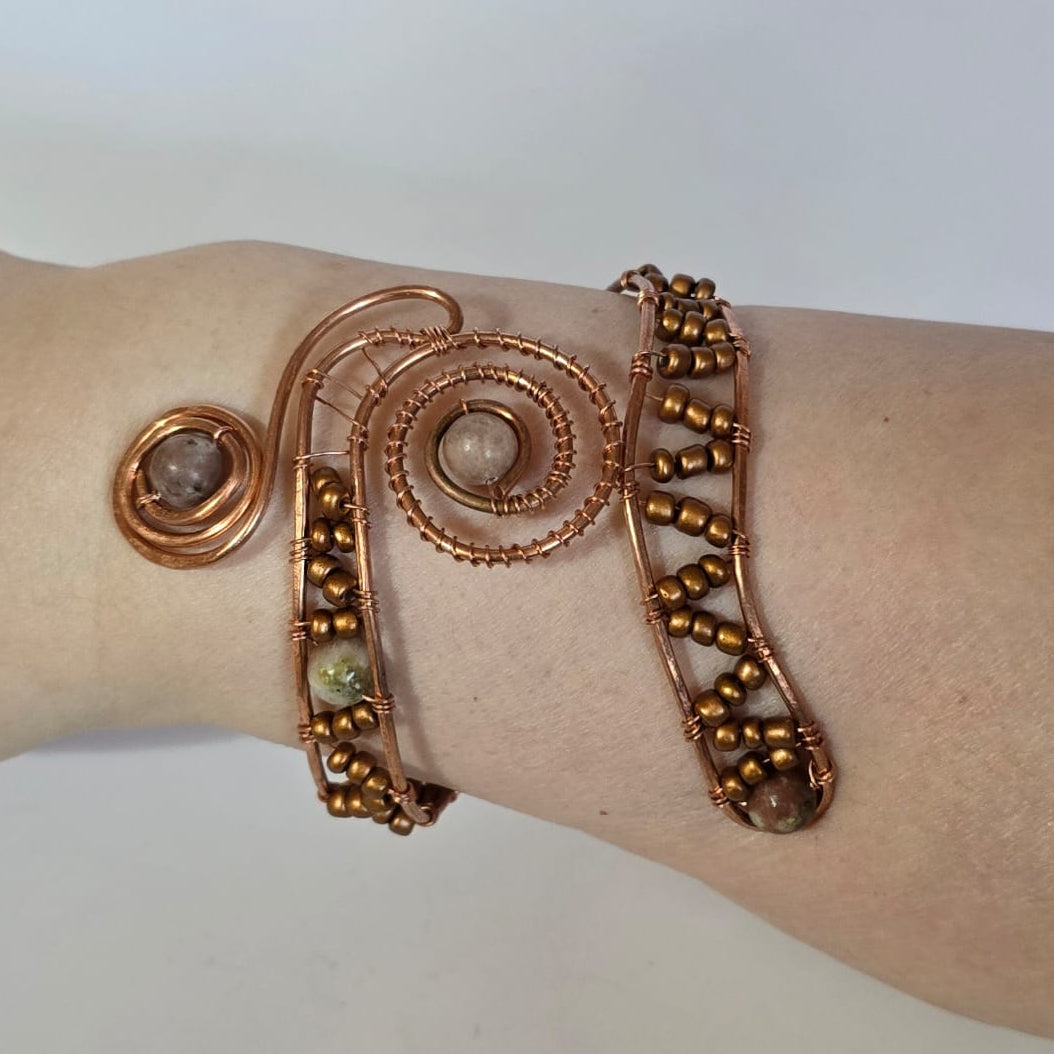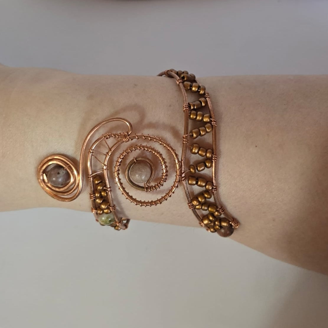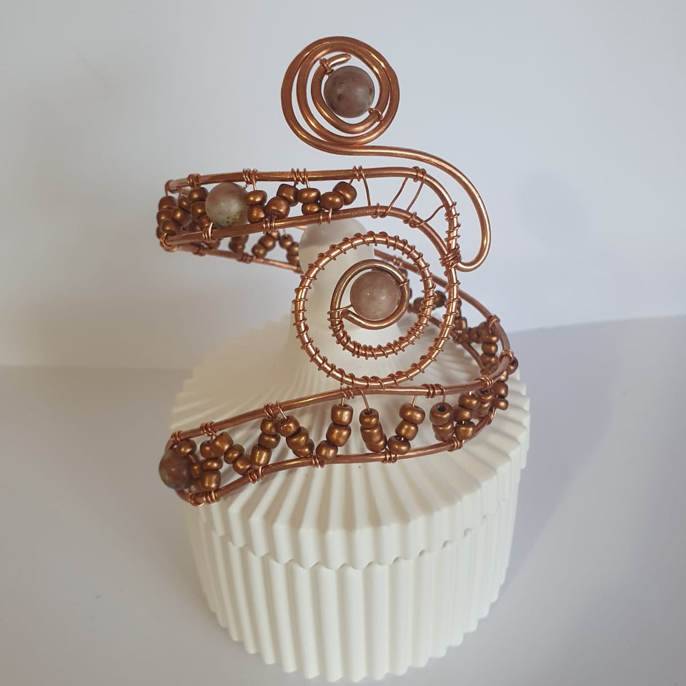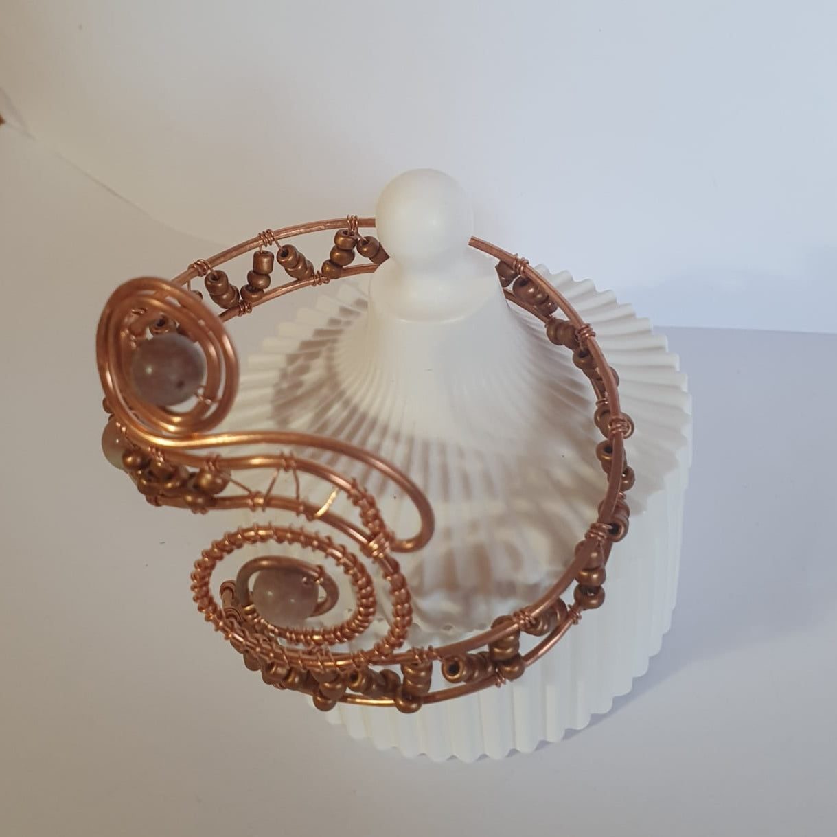 Îmbogățește-ți stilul și bunăstarea cu brățara noastră din cupru! Realizată cu mărgele semiprețioase, acest accesoriu la modă nu numai că adaugă o notă de eleganță oricărei ținute, dar promovează și energie pozitivă și bunăstare generală. Bucură-te de beneficiile cuprului și obține un aspect uimitor cu brățara noastră. Mărimea este reglabilă.