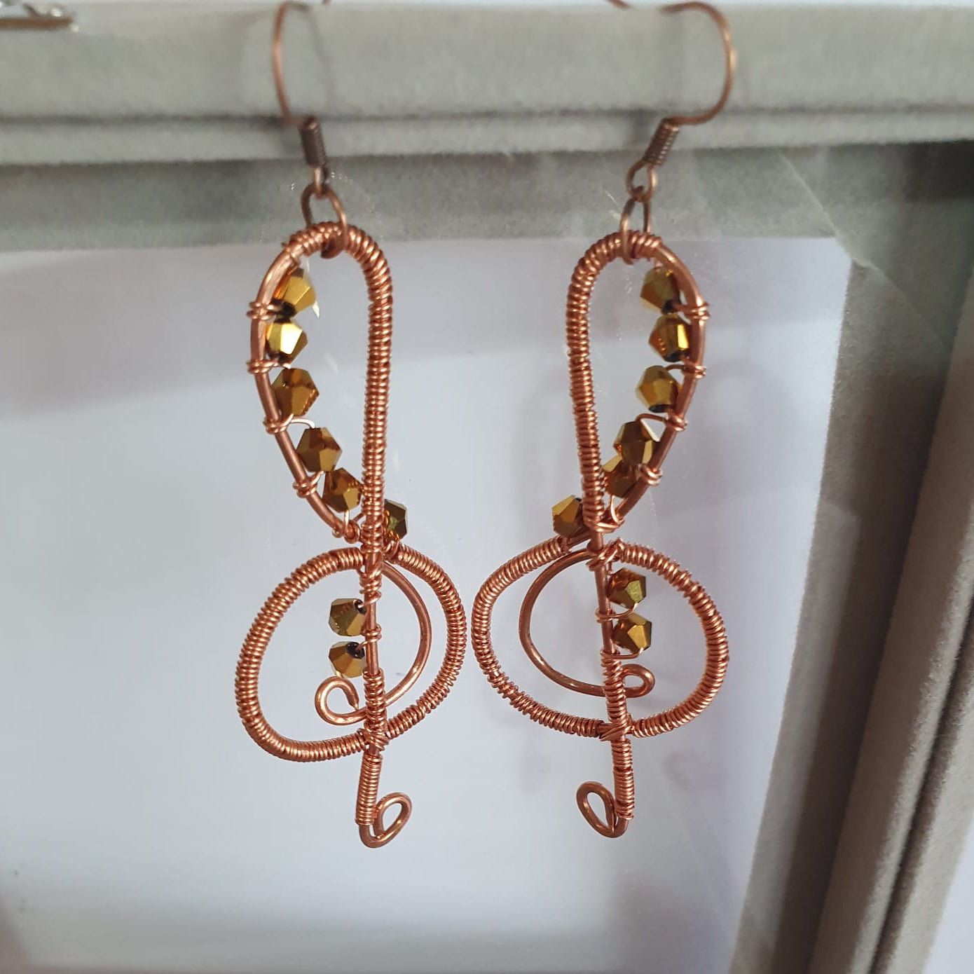 Transformă-ți look-ul cu cerceii noștri rafinați cu cristale, unde cuprul cald întâlnește accentele strălucitoare de cristal. Aceste piese remarcabile captează lumina din orice unghi, atrăgând atenția asupra frumuseții tale naturale. Echilibrul perfect dintre farmecul rustic și strălucirea elegantă face ca acești cercei să fie irezistibili pentru orice ocazie. Nu te limita la accesorizare - fă o impresie de durată cu aceste comori unice, atrăgătoare, despre care toată lumea va întreba.
