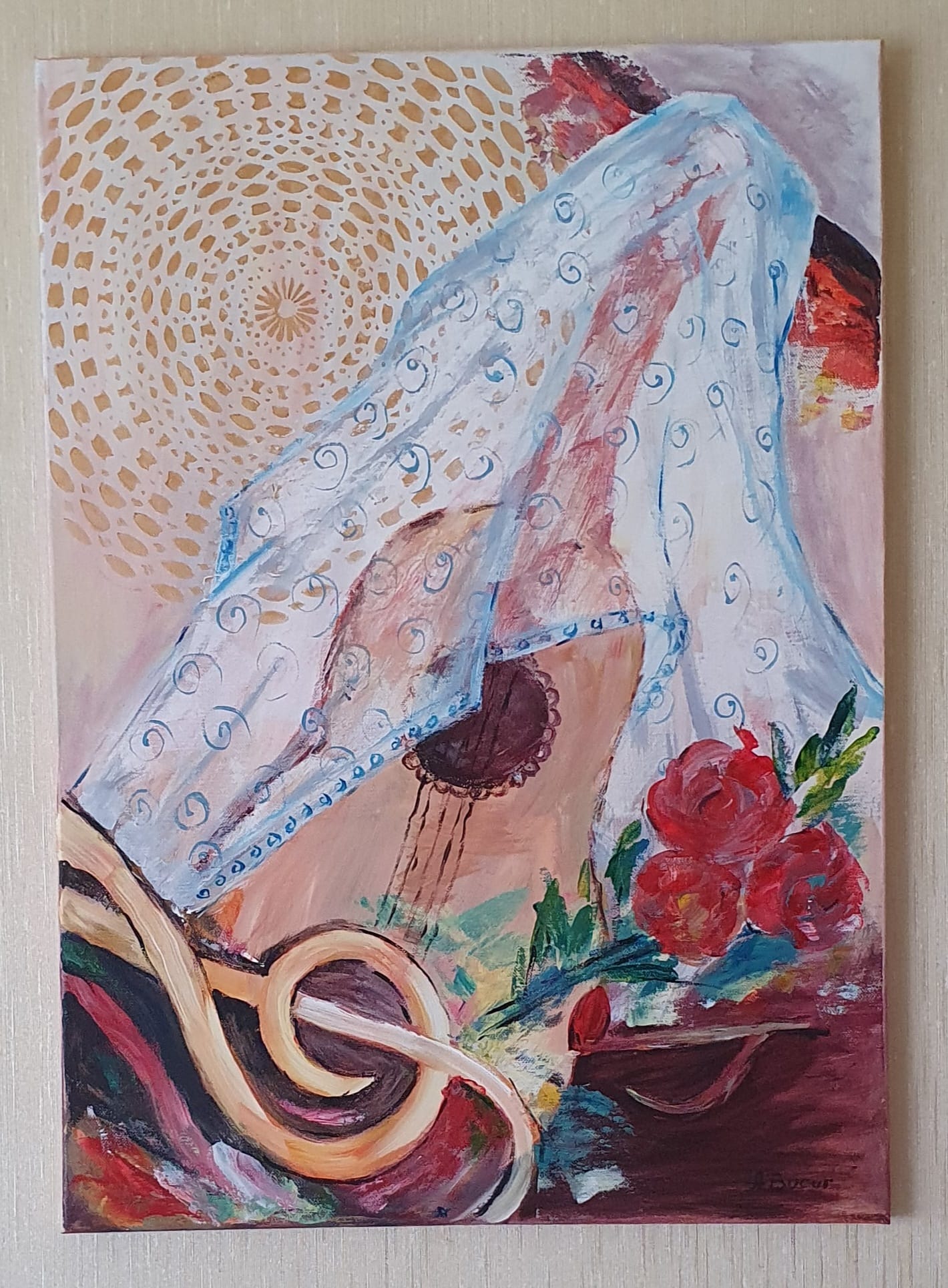 Acest tablou acrilic vibrant surprinde esența plină de suflet a unei chitare cu culori îndrăznețe și tușe dinamice de pensulă. Gata de expus așa cum este, aduce energie artistică și inspirație muzicală în orice spațiu, fără a necesita o ramă. Perfect pentru iubitorii de muzică care caută un tablou unic și expresiv pentru a-și îmbogăți decorul.