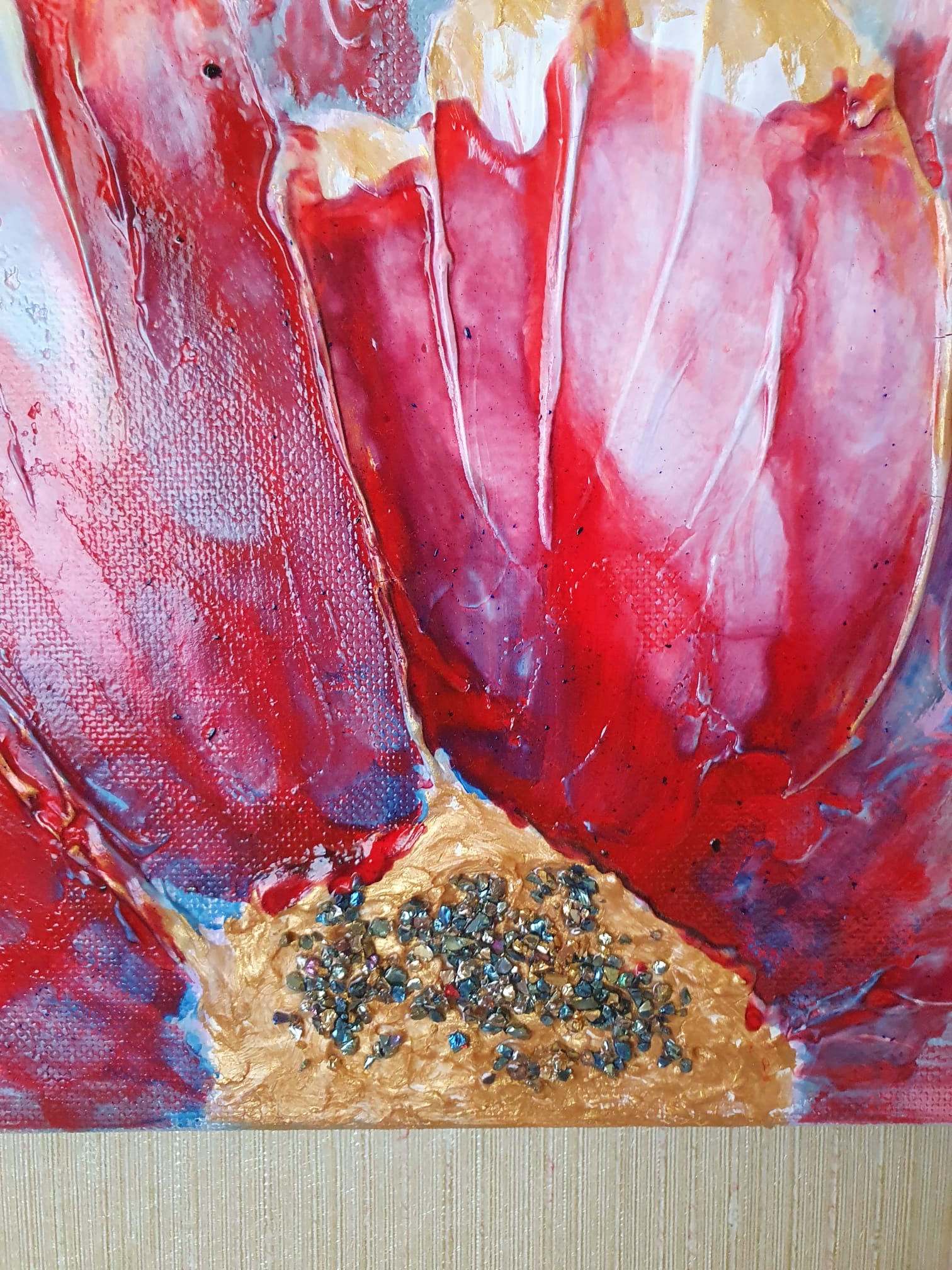 Descoperă farmecul captivant al tabloului „Jumătate”, o lucrare acrilică pe pânză care surprinde frumos jumătate dintr-o floare. Creată printr-o tehnică mixtă de cuțit și pensulă, această piesă oferă o textură bogată și o adâncime dinamică. Compoziția sa unică te invită să explorezi echilibrul delicat dintre detaliu și abstract, făcând-o o completare remarcabilă pentru orice spațiu. Înalță-ți decorul cu acest tablou expresiv și elegant care aduce subtilitatea frumuseții naturii în casa ta.