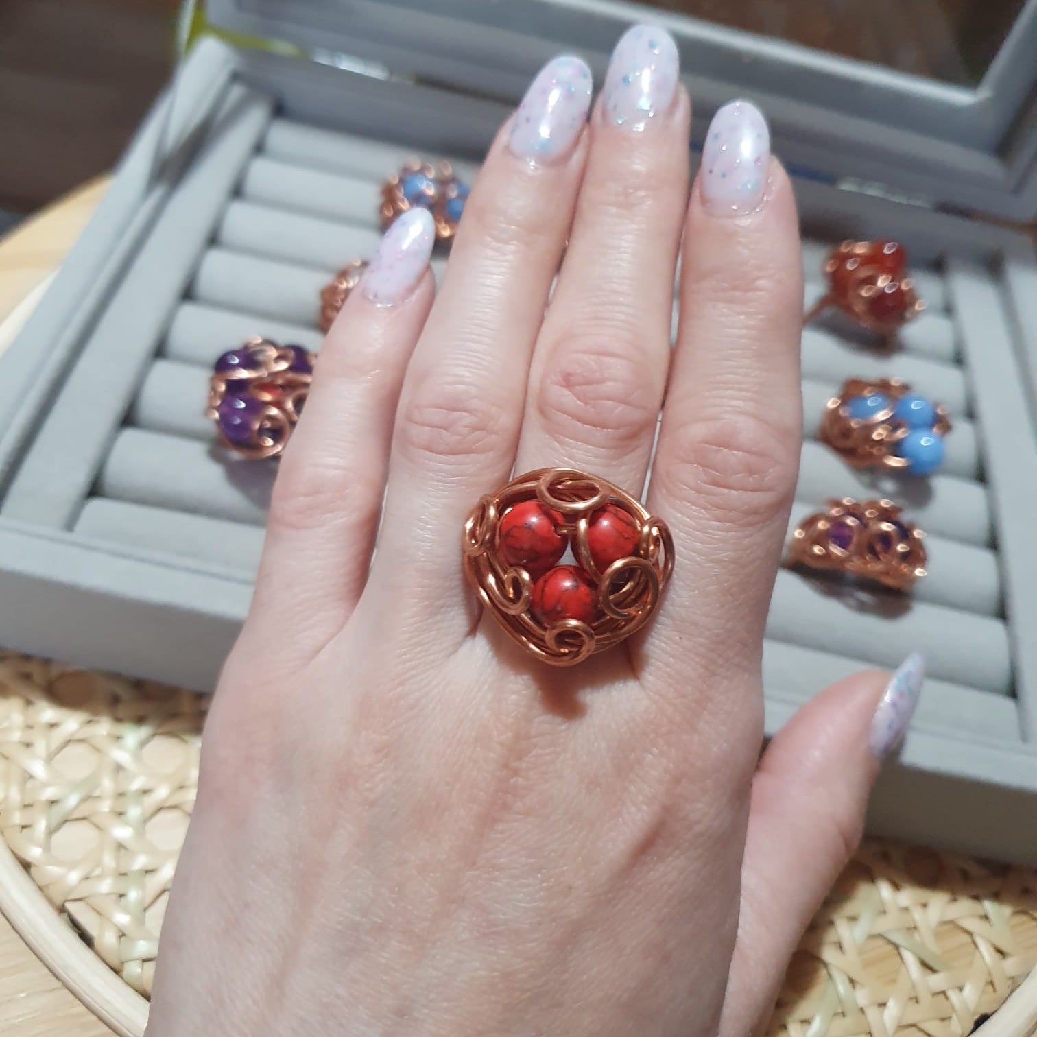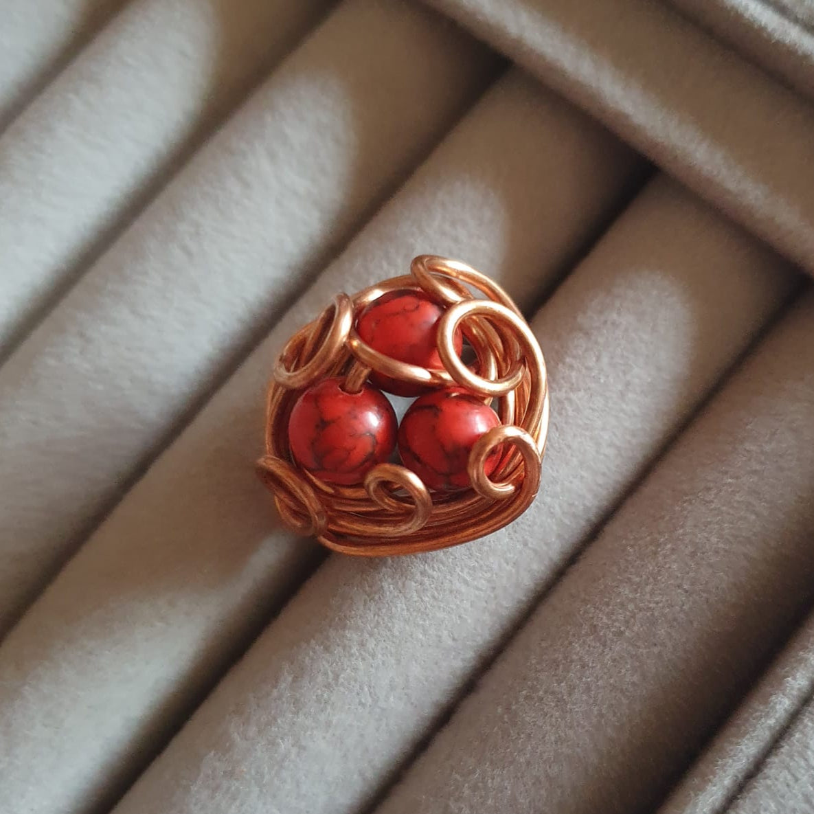 Răsfață-te cu frumusețea îndrăzneață și elegantă a inelului nostru cu howlit. Această piesă rafinată prezintă o piatră howlit roșie vibrantă, care emană încredere și pasiune. Împodobește orice ținută cu acest accesoriu uimitor și ieși în evidență.