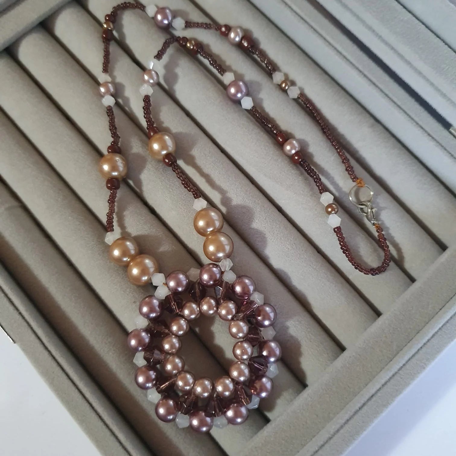 Acest colier rafinat este realizat cu perle strălucitoare și cristale strălucitoare din sticlă, creând un accesoriu orbitor și elegant pentru orice ocazie. Îmbogățește-ți colecția cu această piesă frumoasă care adaugă o notă de rafinament și lux aspectului tău.