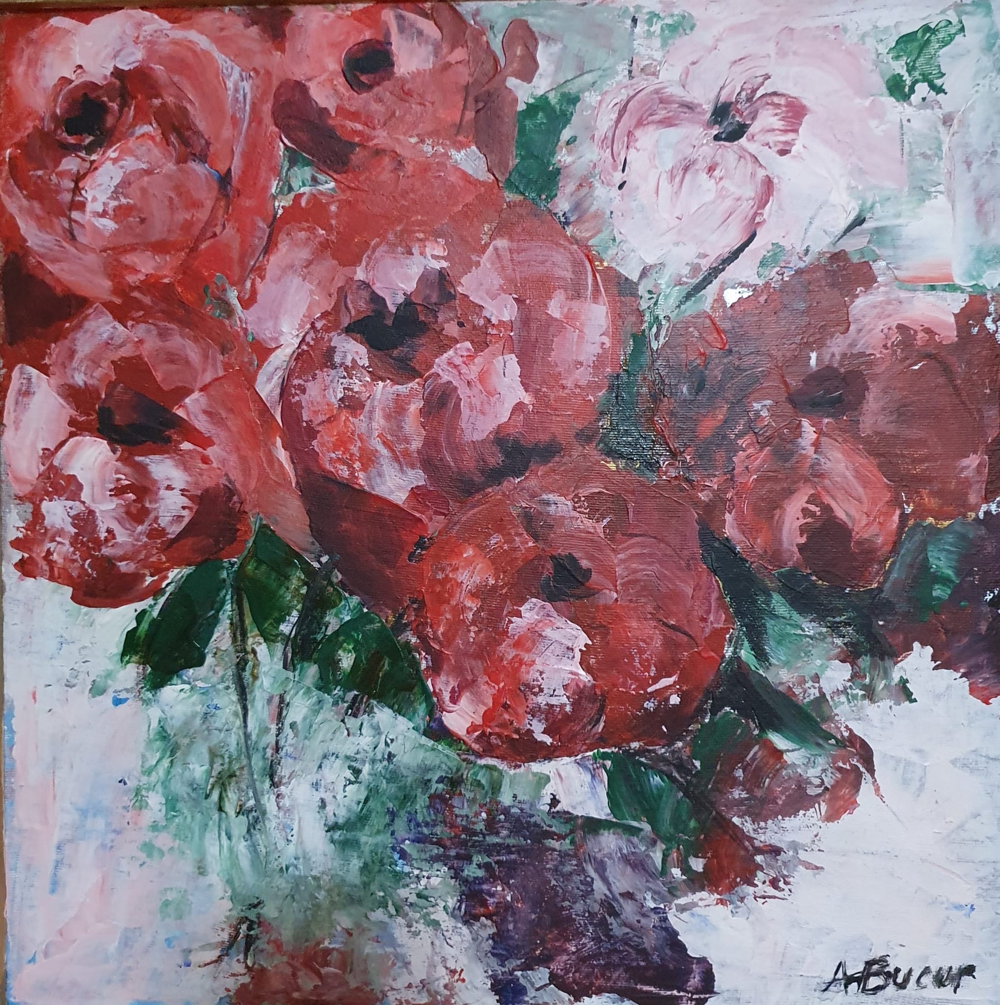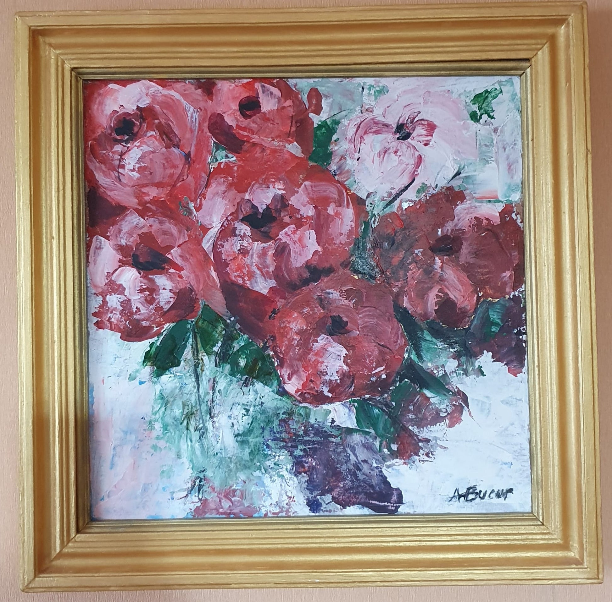Transformă-ți spațiul cu acest tablou acrilic uimitor pe pânză, care evidențiază frumusețea delicată a bujorilor. Culorile vibrante și tușele texturate de pensulă dau viață acestor flori, adăugând eleganță și căldură oricărei încăperi. Perfect pentru iubitorii de artă care caută un tablou atemporal ce luminează casa cu farmec natural.