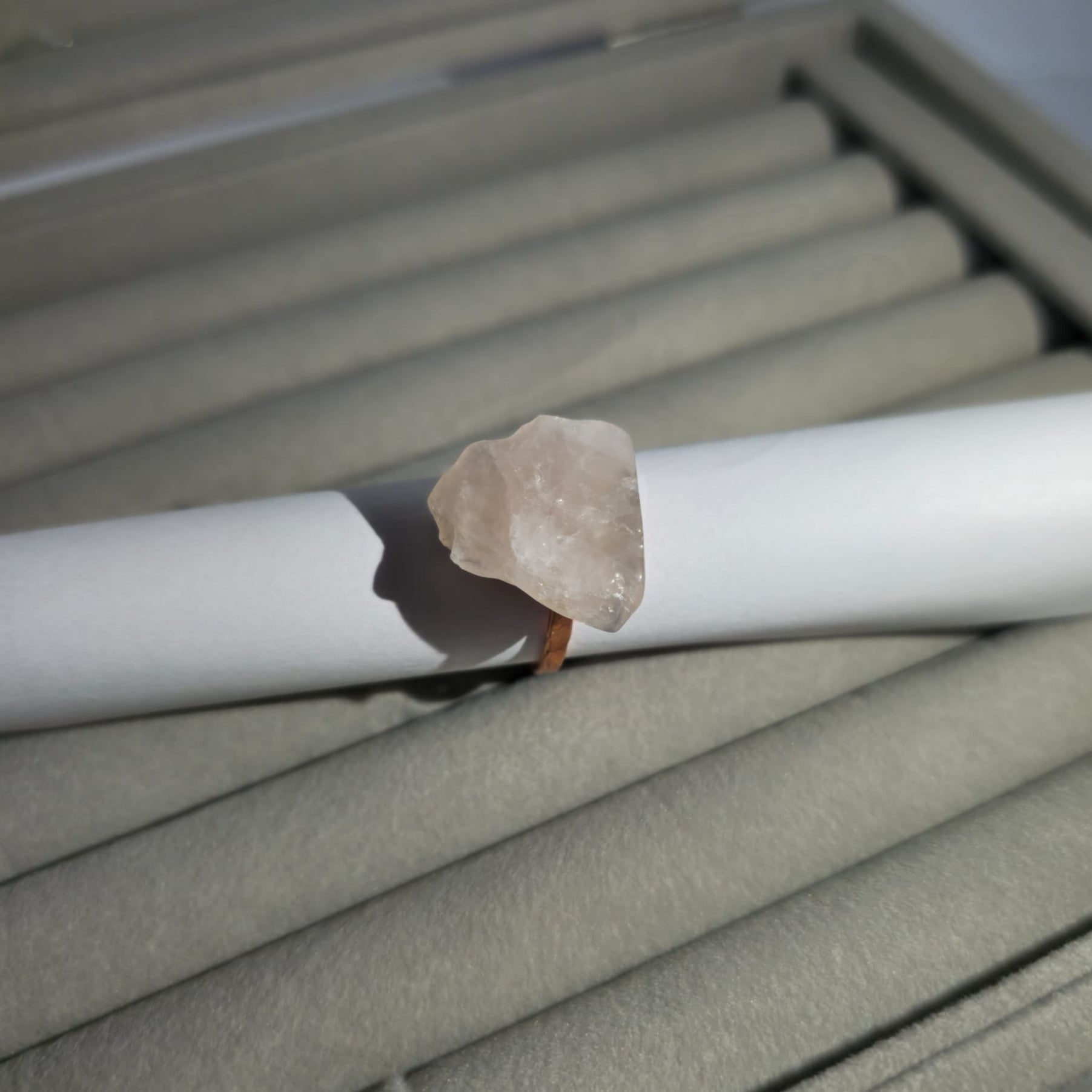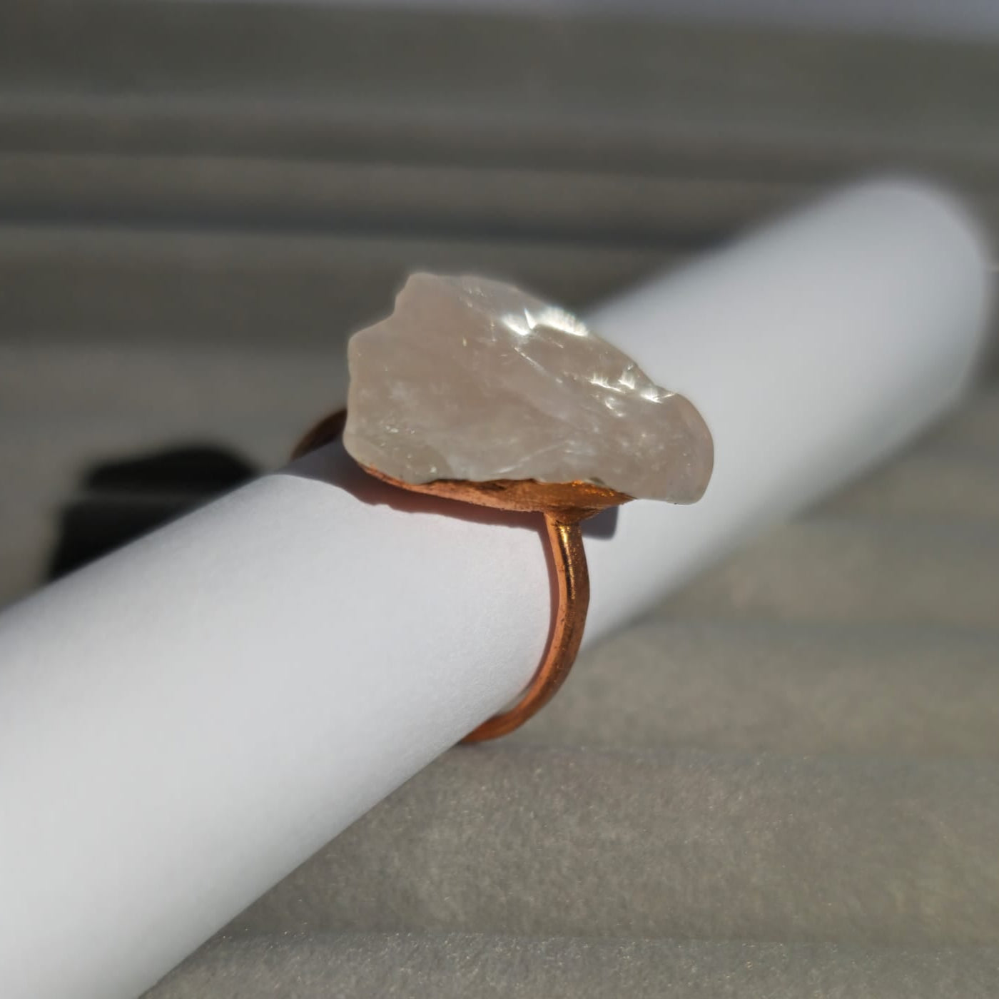 Fabricat din cupru electroformat și o piatră naturală de cuarț brut, acest uimitor inel din cuarț brut este o completare unică și elegantă a oricărei colecții de bijuterii. Cuprul oferă durabilitate, iar piatra de cuarț se mândrește cu proprietăți vindecătoare unice, făcând din acest inel o alegere frumoasă și benefică pentru purtarea zilnică.