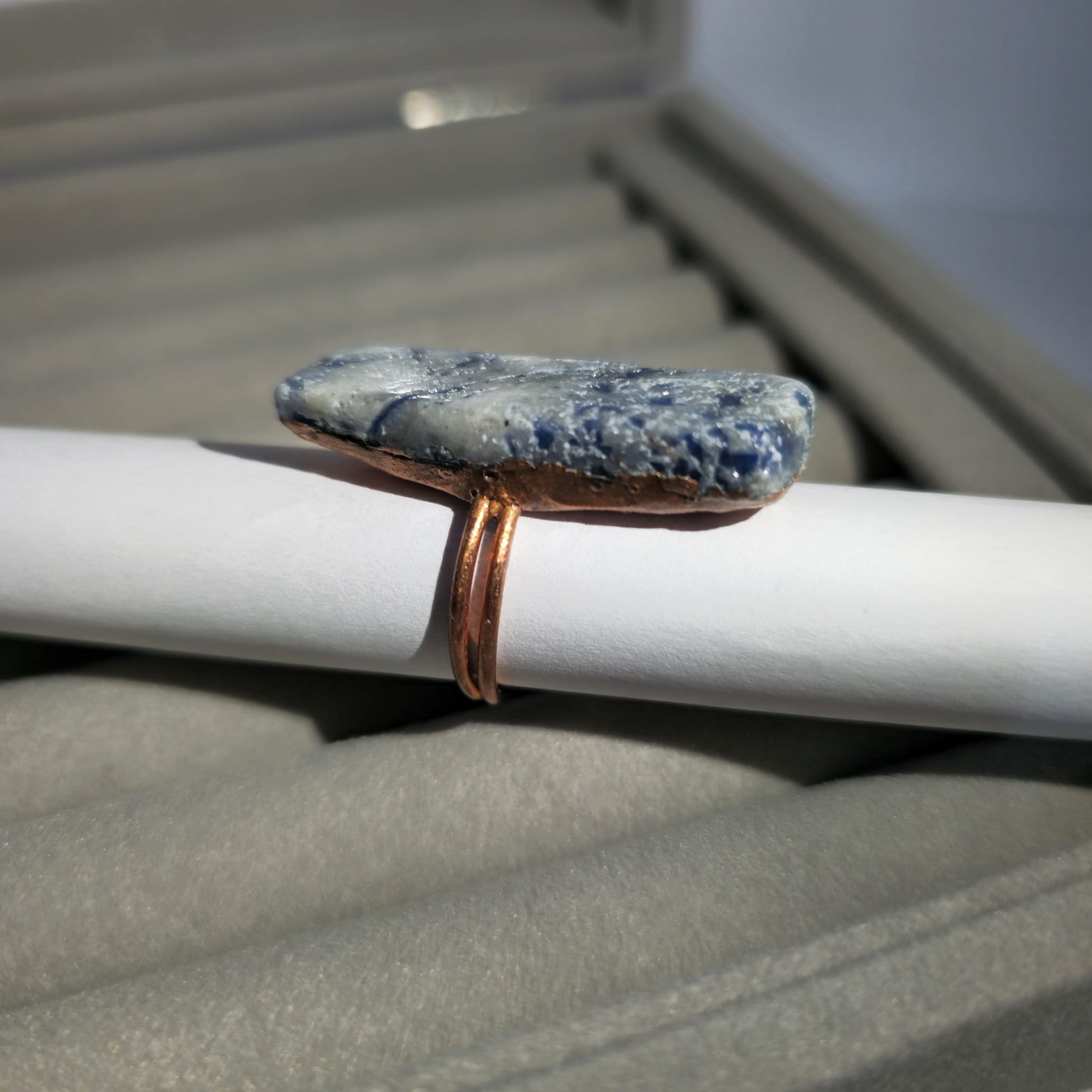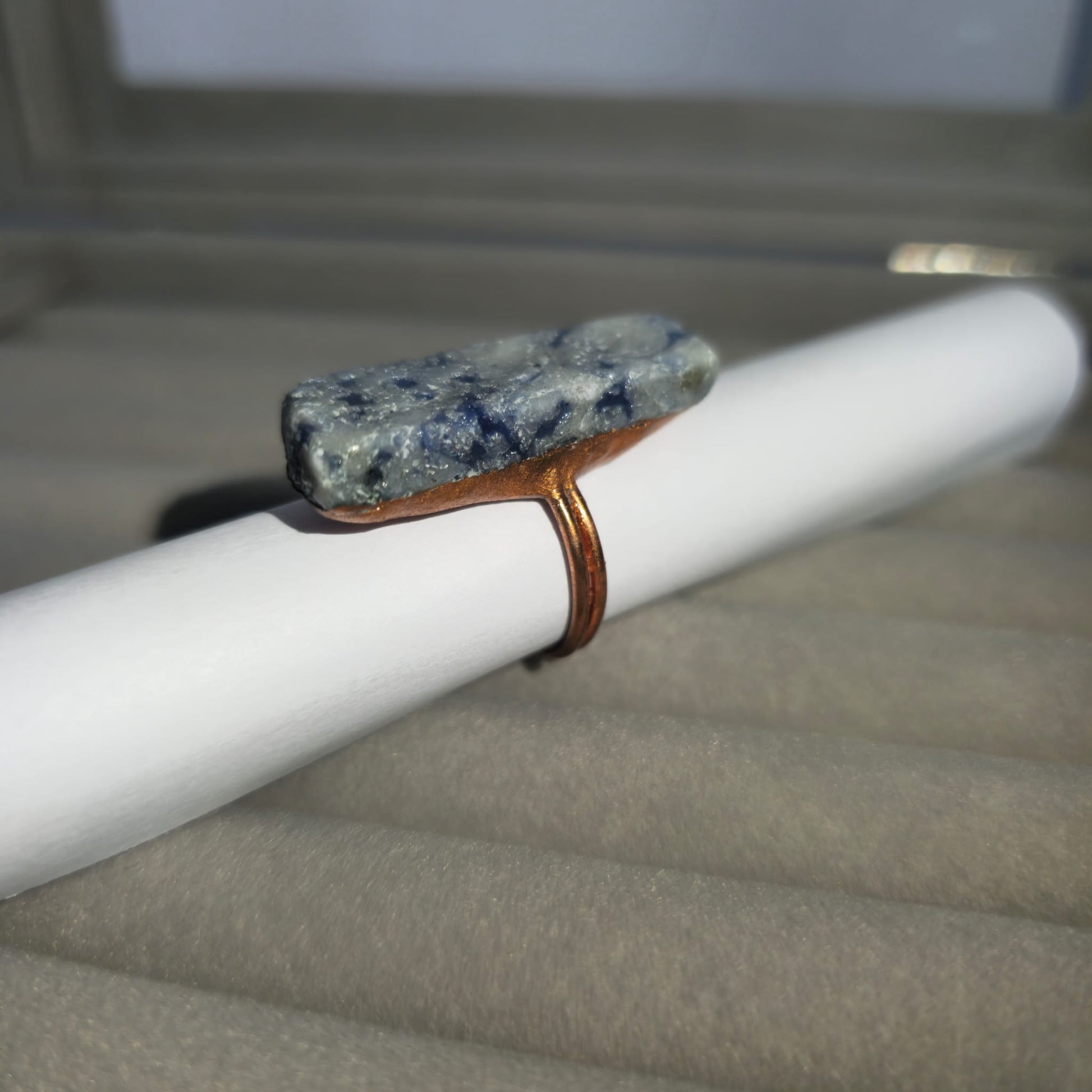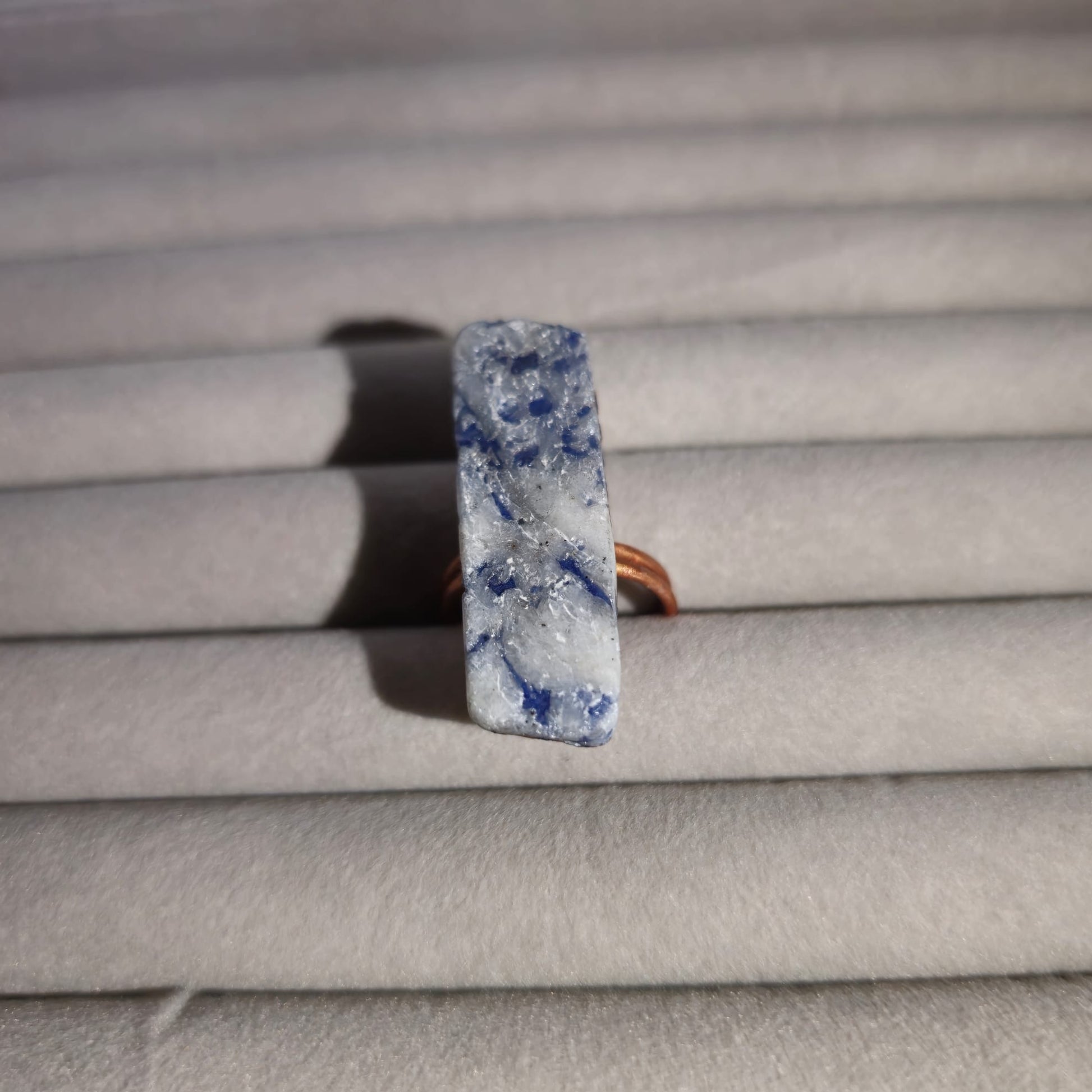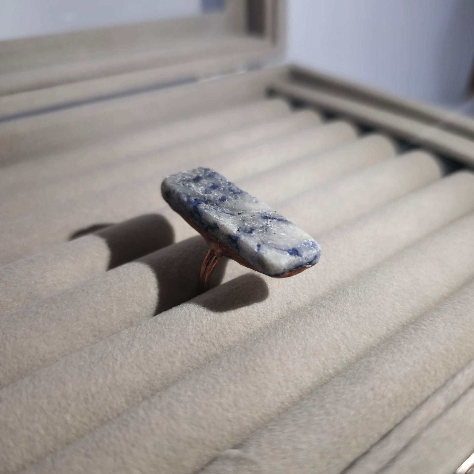 Creat de artizani experți, inelul cu sodalită brută se mândrește cu o bandă de cupru electroformat și o superbă piatră de sodalit. Completarea perfectă a oricărei colecții de bijuterii, designul său unic și materialele de calitate îl fac un accesoriu indispensabil pentru orice ocazie.