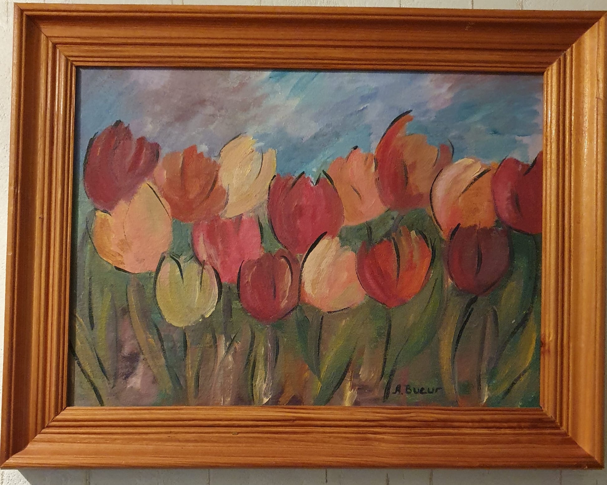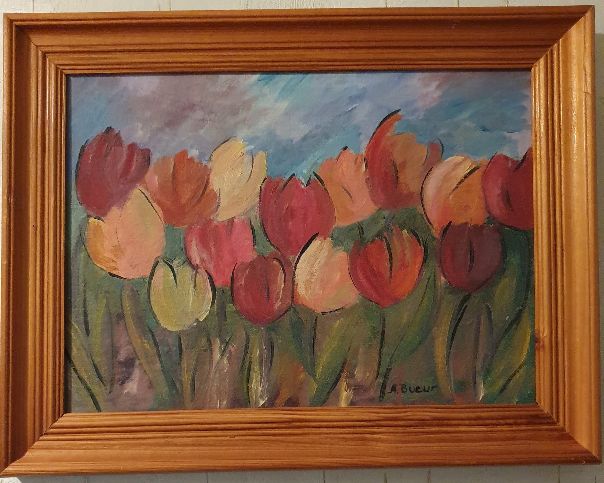 Acest tablou în ulei excepțional pe pânză surprinde frumusețea vibrantă a lalelelor în plină floare. Culorile bogate și tușele texturate de pensulă aduc un plus de viață și eleganță oricărei încăperi. Perfect pentru a adăuga căldură și rafinament în locuința sau biroul tău, acest tablou îți transformă spațiul cu un farmec floral atemporal.
